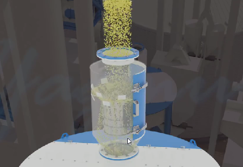 原料从进厂开始,就需用各种输送设备来完成原料储存,原料在各工序之间有序流动,直至成品输送出厂。饲料厂常用输送设备有螺旋输送机、带式输送机、刮板输送机、斗式提升机、气力输送设备及各种阀门、管路和分配器等。虚拟操作要求学生根据原料种类、生产目的及设备特点正确选择和使用输送设备。