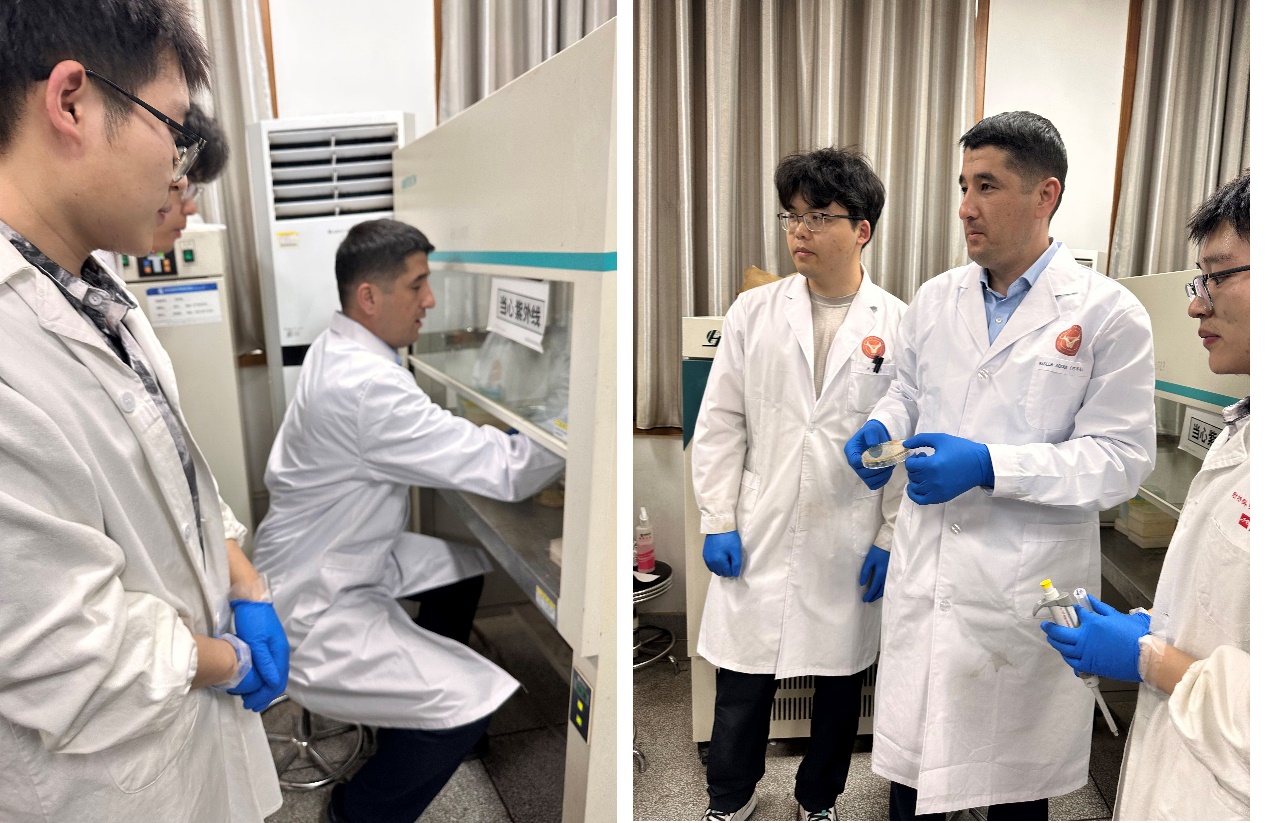 行程的最后环节,代表团前往南校作物抗逆与高效生产全国重点实验室,参与了我院的抗菌肽研发平台。平台师生细致讲解了抗菌肽相关产品开发的思想、技术路线和阶段性成果,并指导代表团师生尝试完成了移液器使用、平板涂布和抗菌肽抑菌实验,提高了参观趣味性和师生对抗菌肽研究的感性认识。通过双方深入交流,代表团增强了对色情片发展概况、科研体系与人才培养模式的认识,也为未来我校塔什干分校的发展及国际合作奠定了良好基础,使本次参访画上了圆满句号。